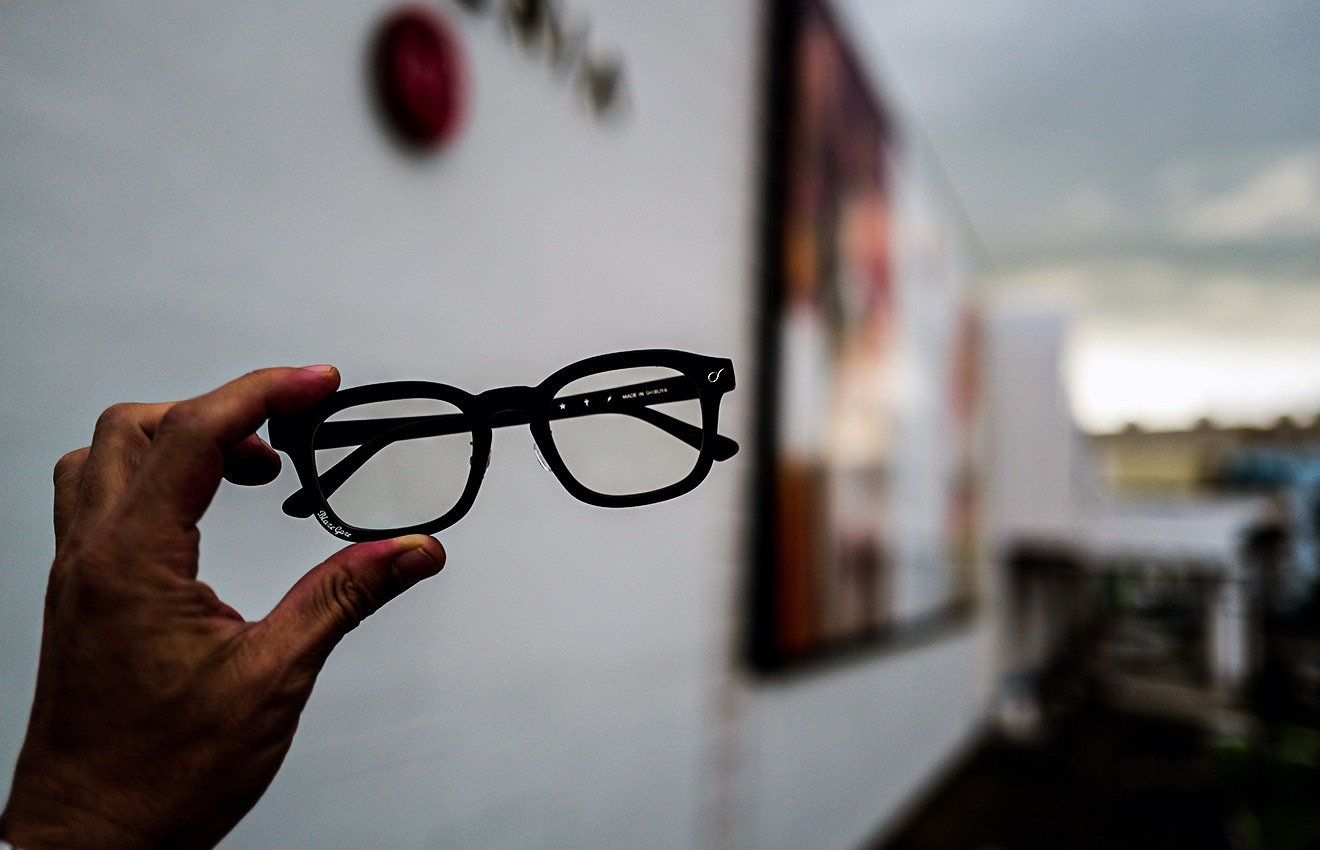 艶感の強いフラットレンズと艶消しのMatte Blackフレームが醸し出す、黒が黒を引き立てる同色同士の組み合わせならではの1本です。