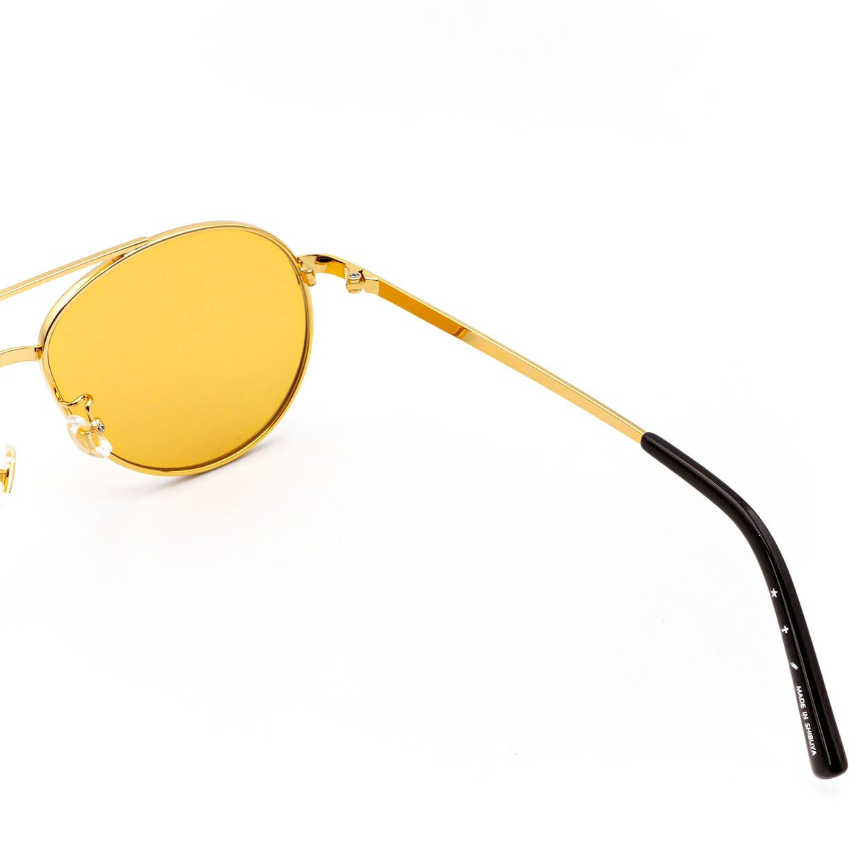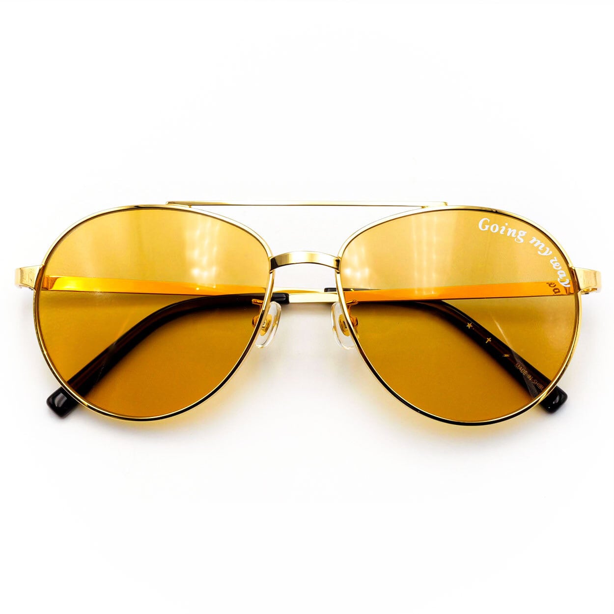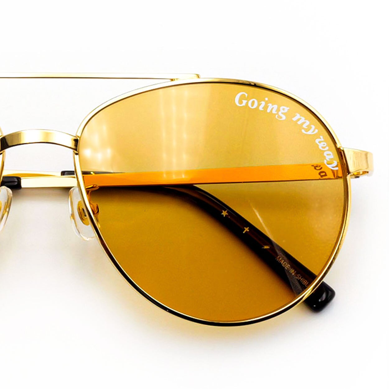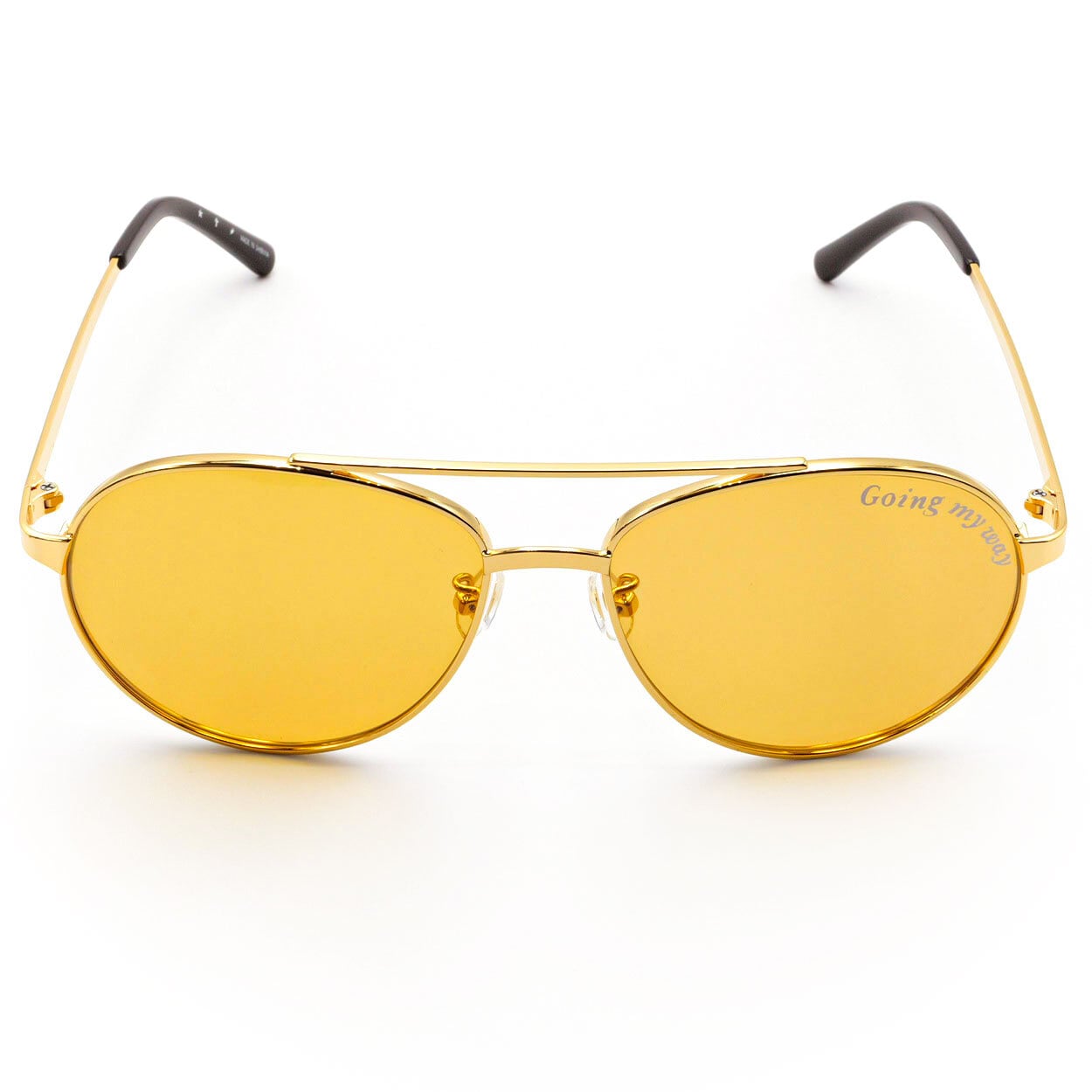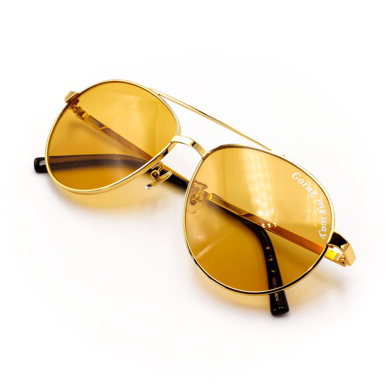 曇り空や夜の街でも表情を失わず、コーディネートに“主役級の色味”を差し込むイエローレンズの存在感。