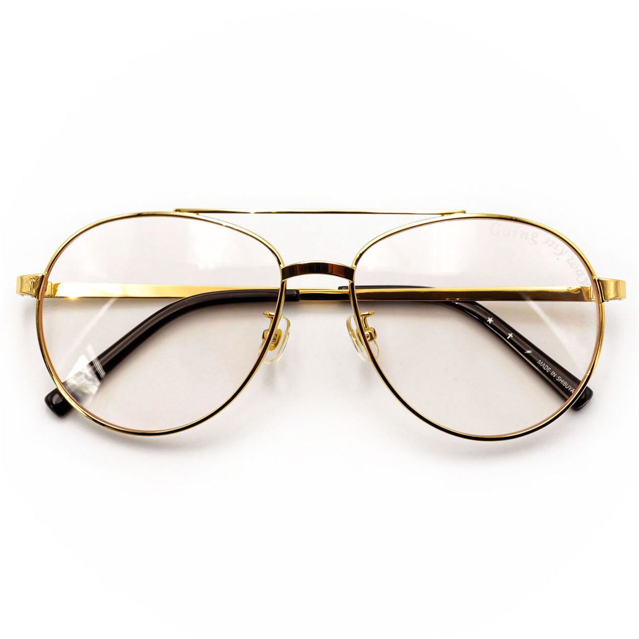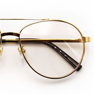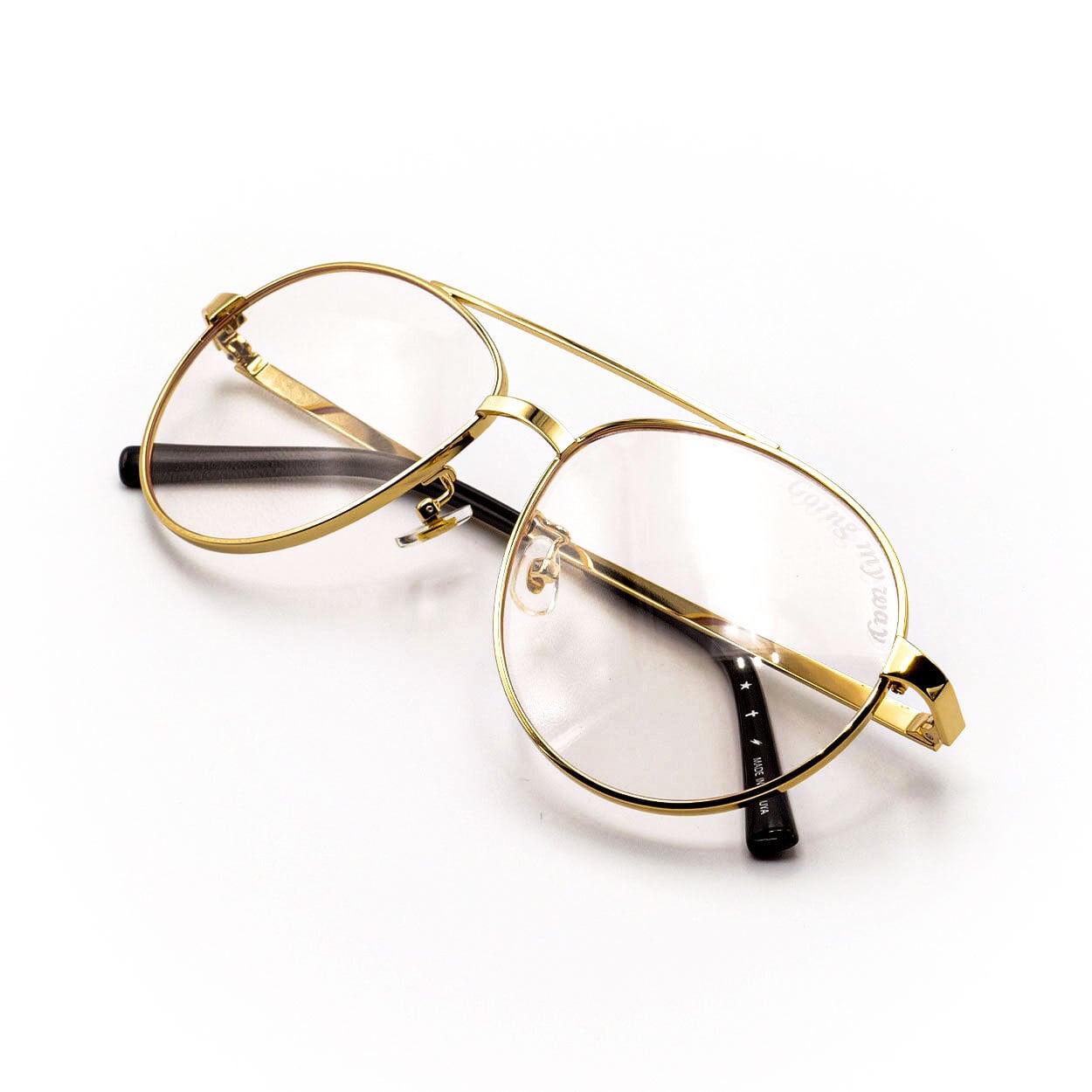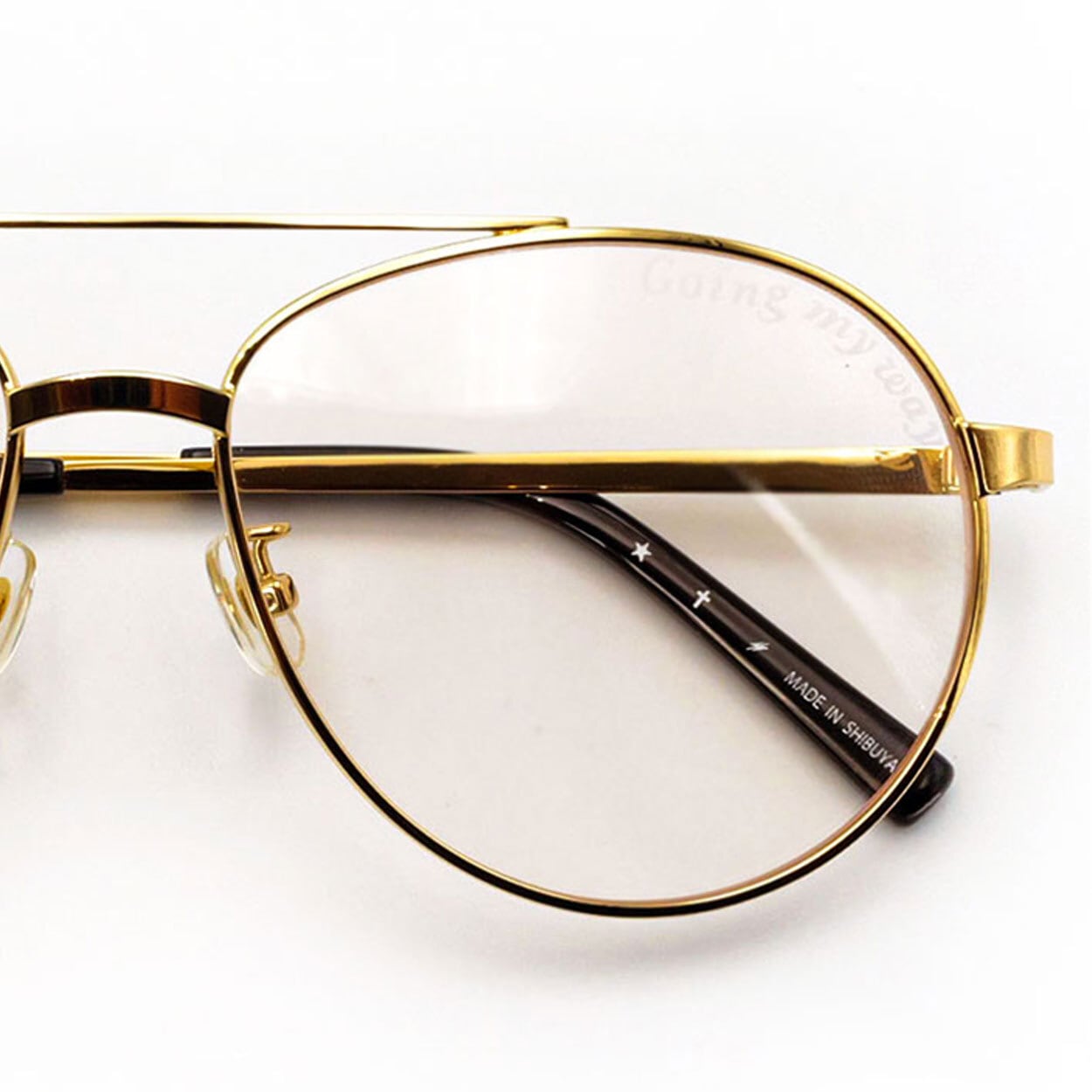Goldメタルフレームの緊張感をほどよく中和し、レンズの色味でカジュアルとフォーマルの境界線を無くした1本。