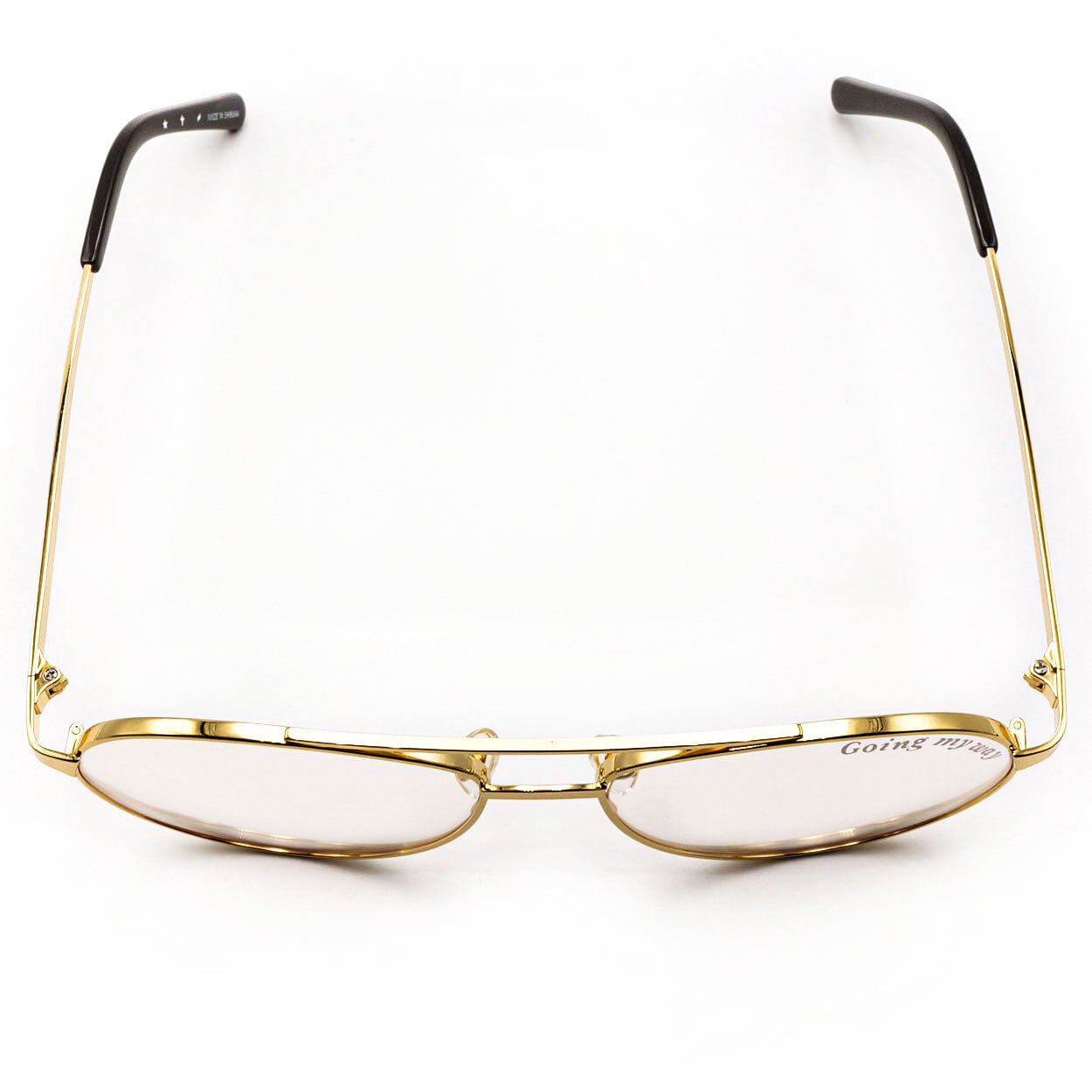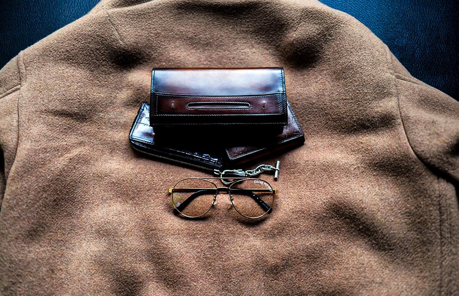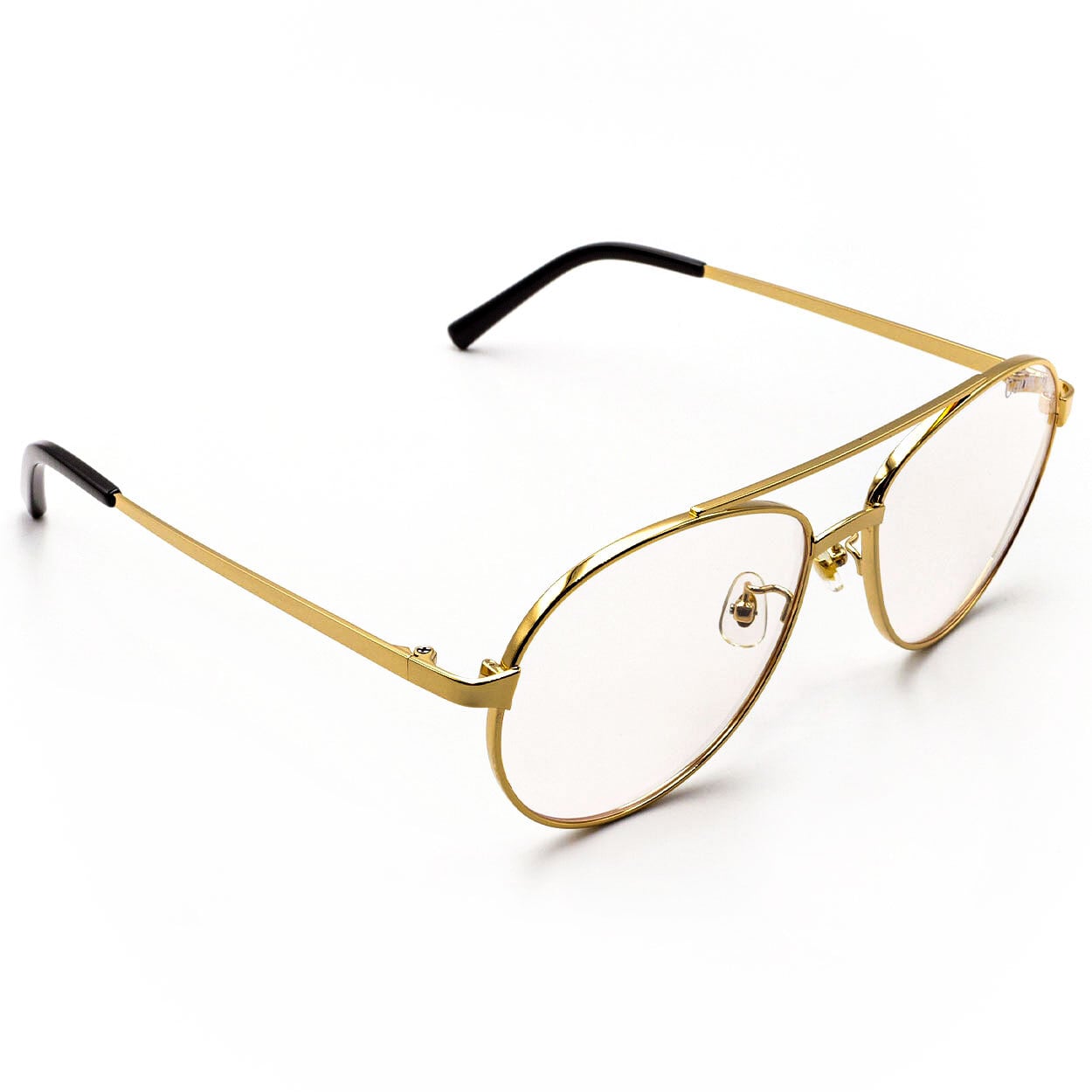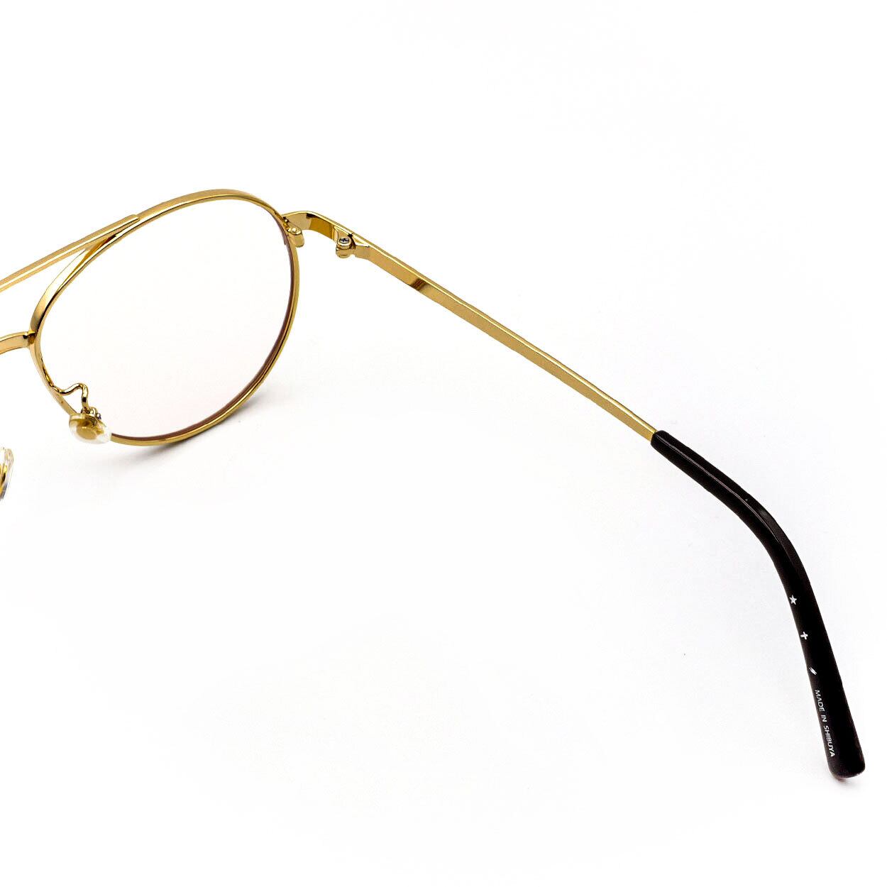 Goldメタルフレームの緊張感をほどよく中和し、レンズの色味でカジュアルとフォーマルの境界線を無くした1本。