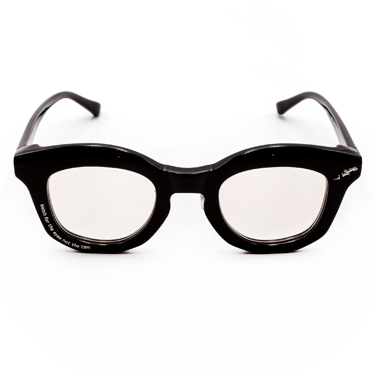 The floating engraving resonates with the sharp flat lenses, creating a quiet yet undeniable presence.