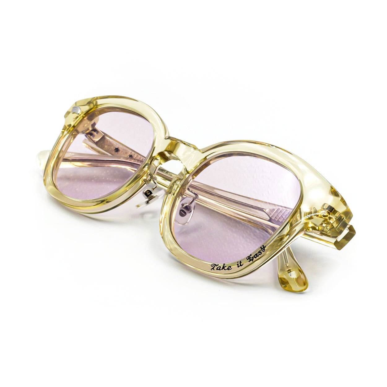 Japan Brandらしいクラシックウェリントンタイプのフレームながらも「Take it easy」「MADE IN SHIBUYA」の刻印プリントをあえて取り込む事で遊び心を忘れずにINしました。