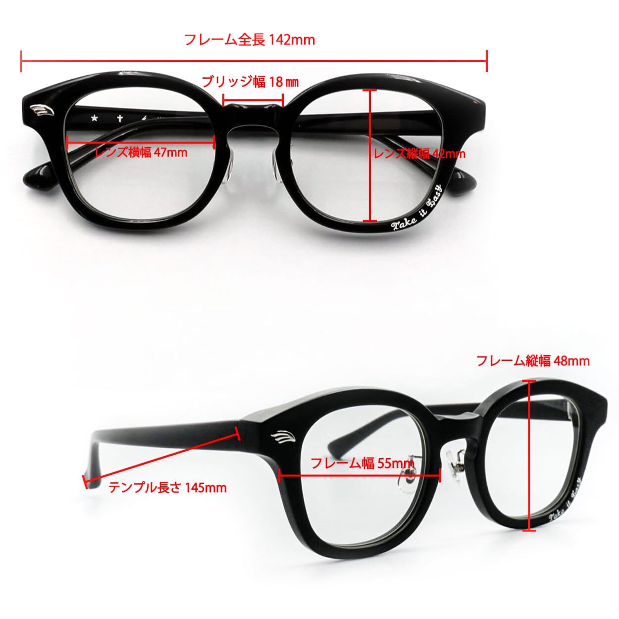 Japan Brandらしいクラシックウェリントンタイプのフレームながらも「Take it easy」「MADE IN SHIBUYA」の刻印プリントをあえて取り込む事で遊び心を忘れずにINしました。