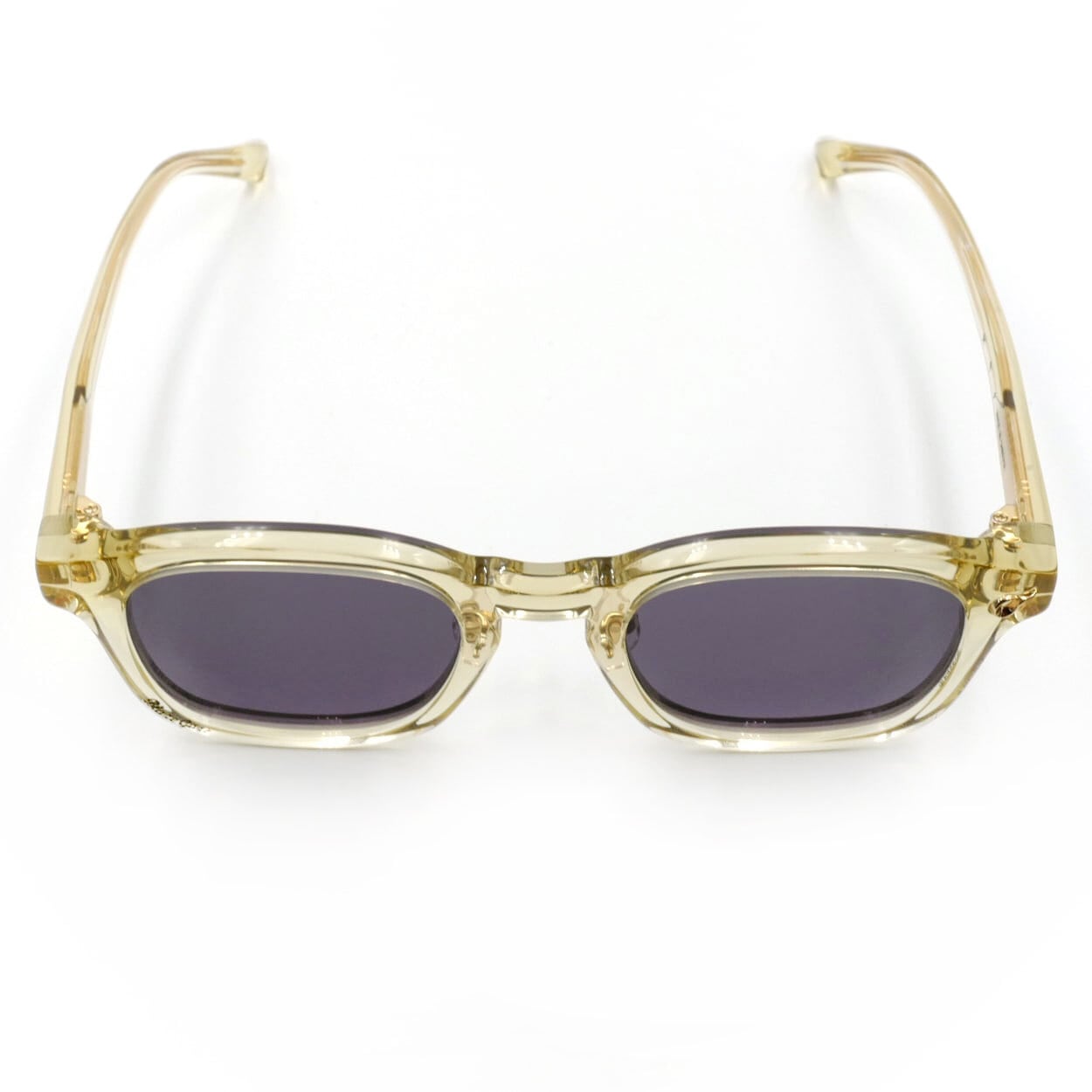 フレームColorには、日焼けしたセルロイドやVintage Eyewearを想起させ、新品でありながら経年を感じさせる表情を追求したVinatageYellowフレーム。