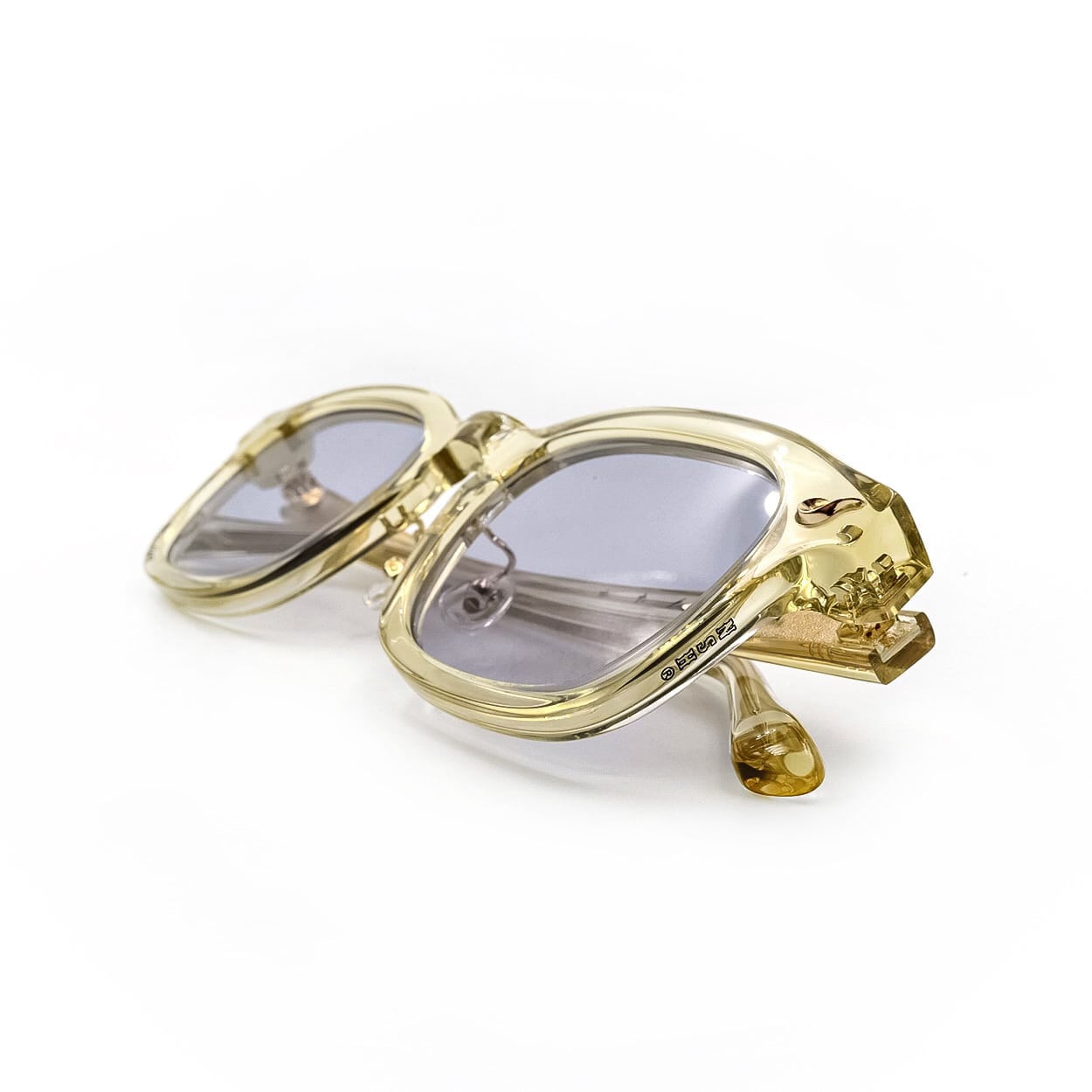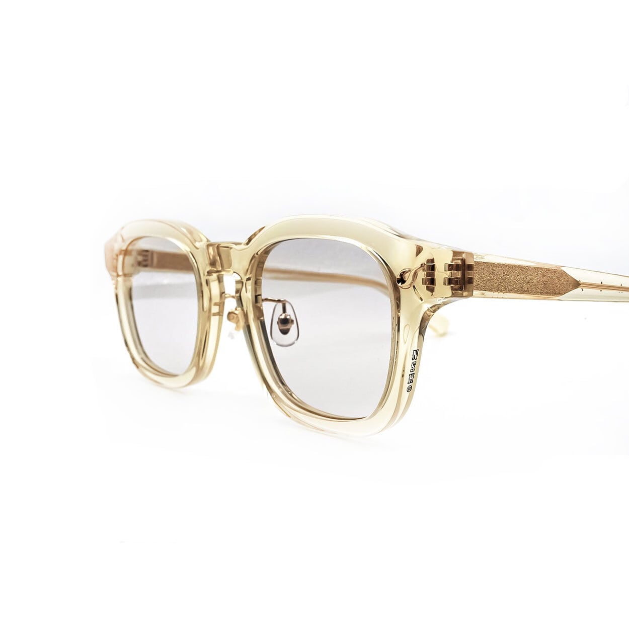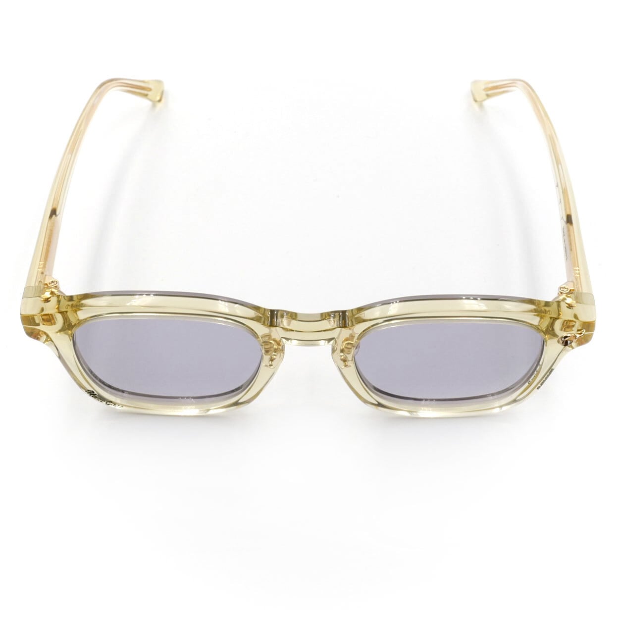 フレームColorには、日焼けしたセルロイドやVintage Eyewearを想起させ、新品でありながら経年を感じさせる表情を追求したVinatageYellowフレーム。