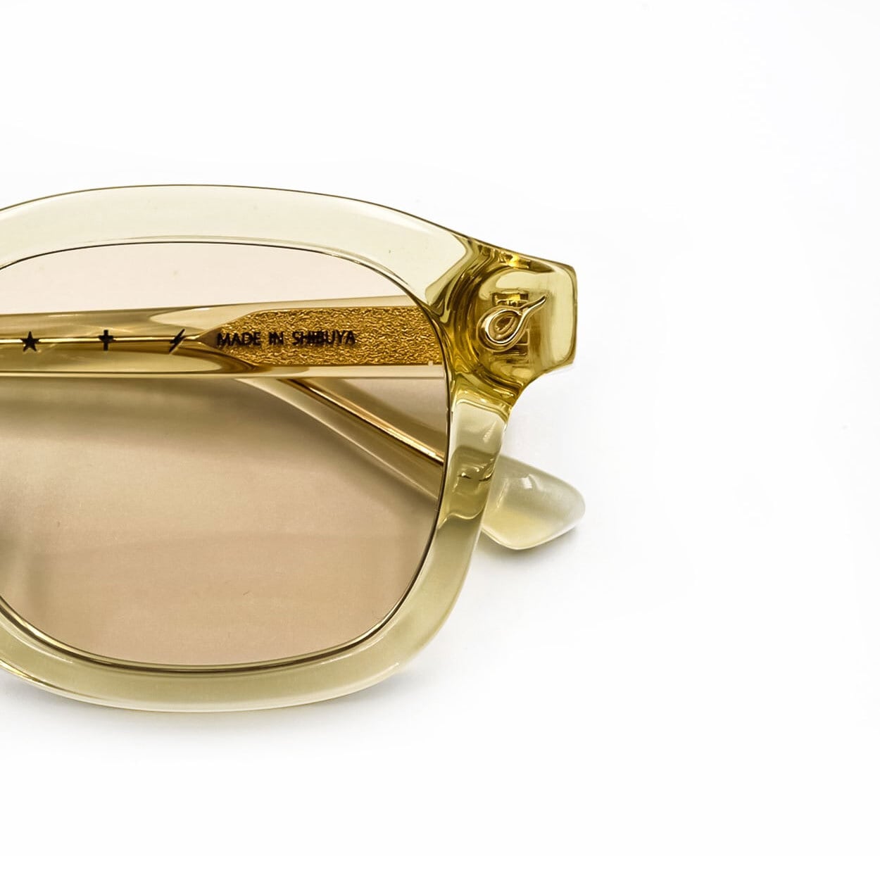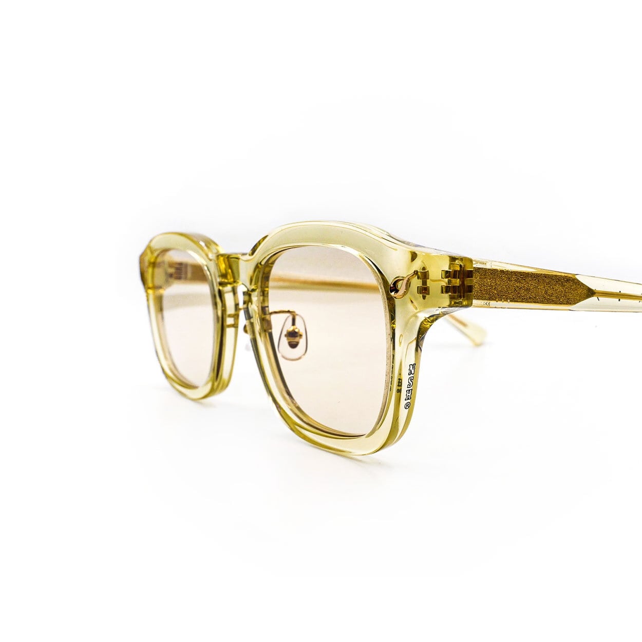 フレームColorには、日焼けしたセルロイドやVintage Eyewearを想起させ、新品でありながら経年を感じさせる表情を追求したVinatageYellowフレーム。