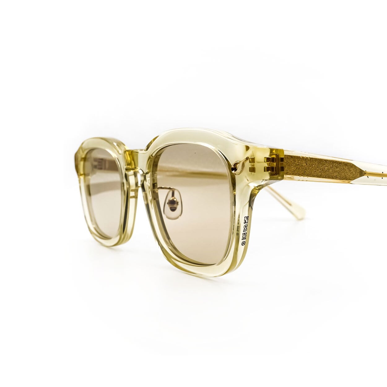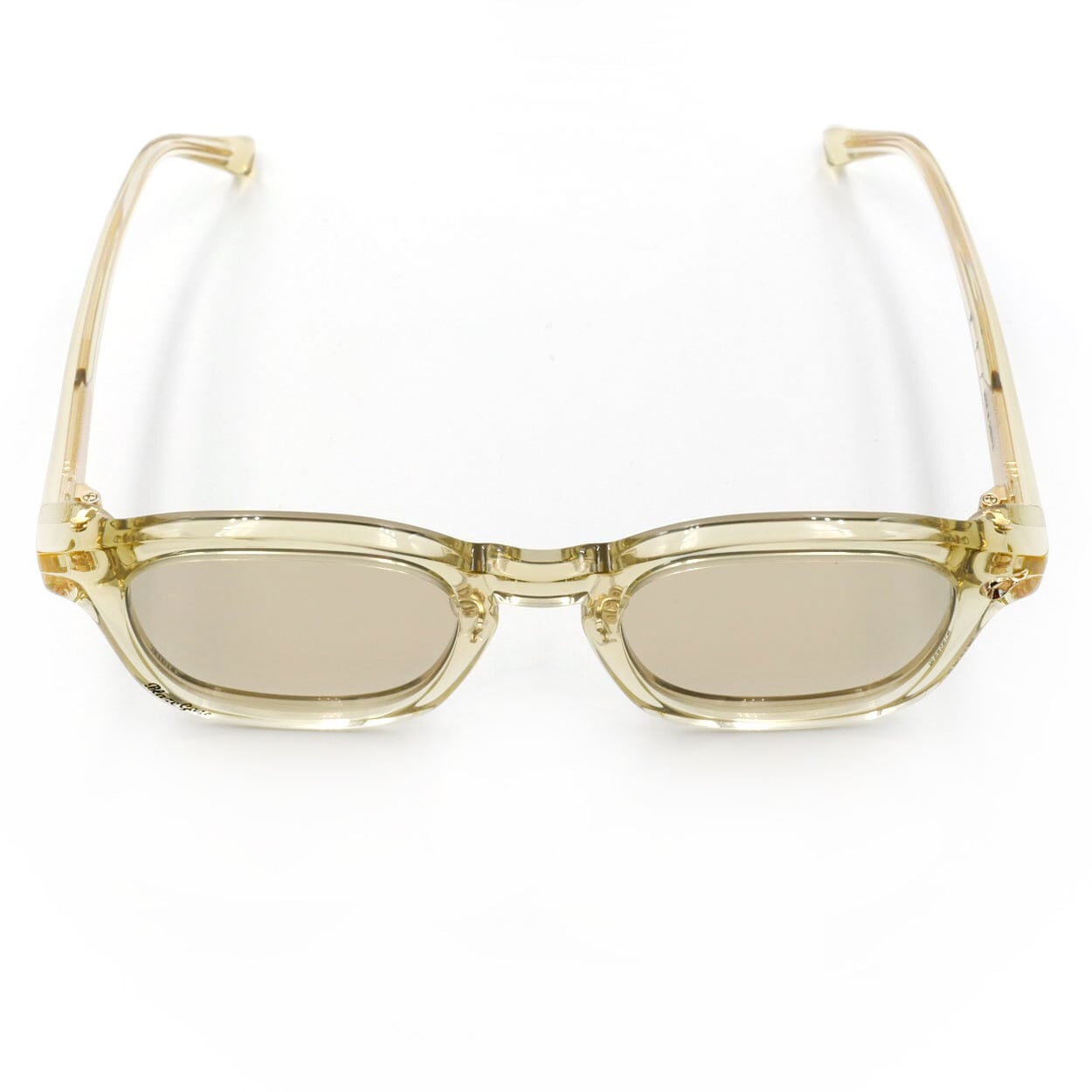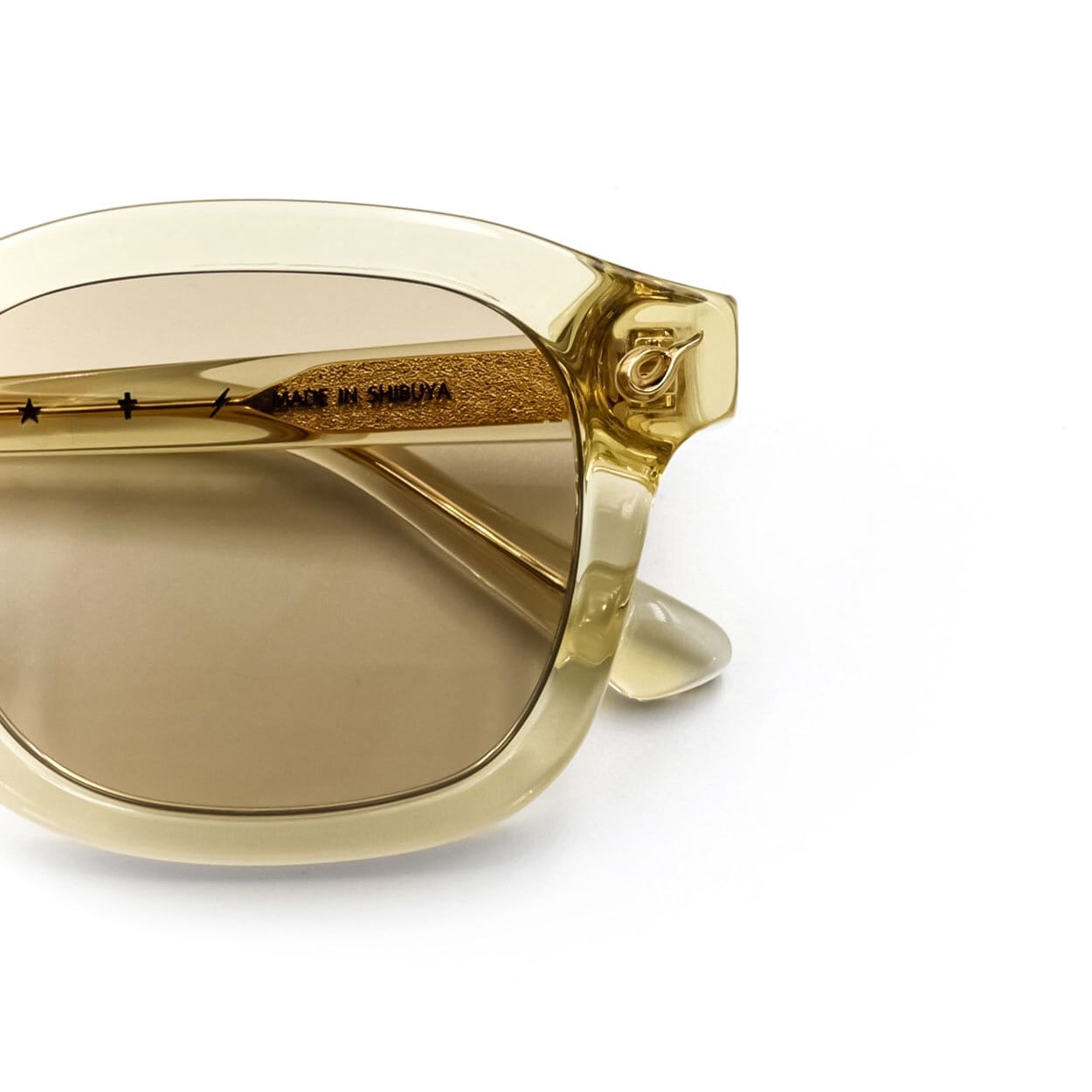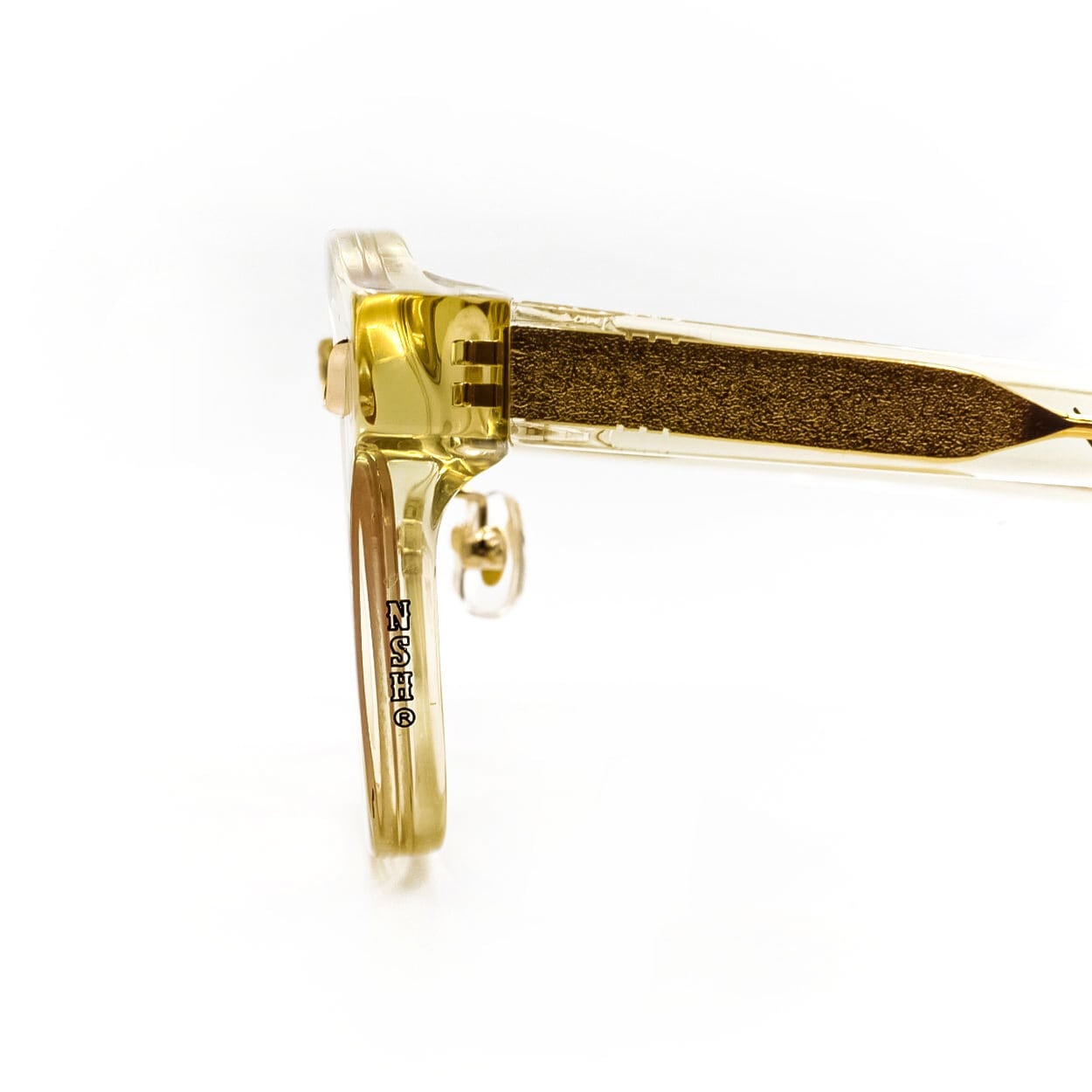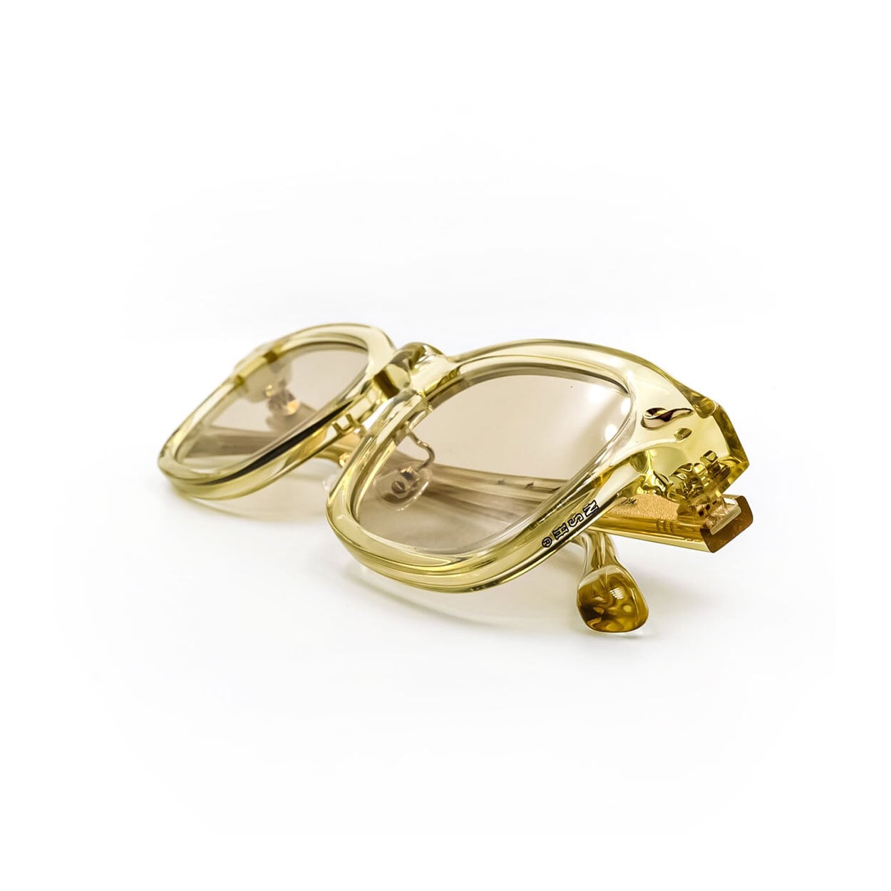 フレームColorには、日焼けしたセルロイドやVintage Eyewearを想起させ、新品でありながら経年を感じさせる表情を追求したVinatageYellowフレーム。