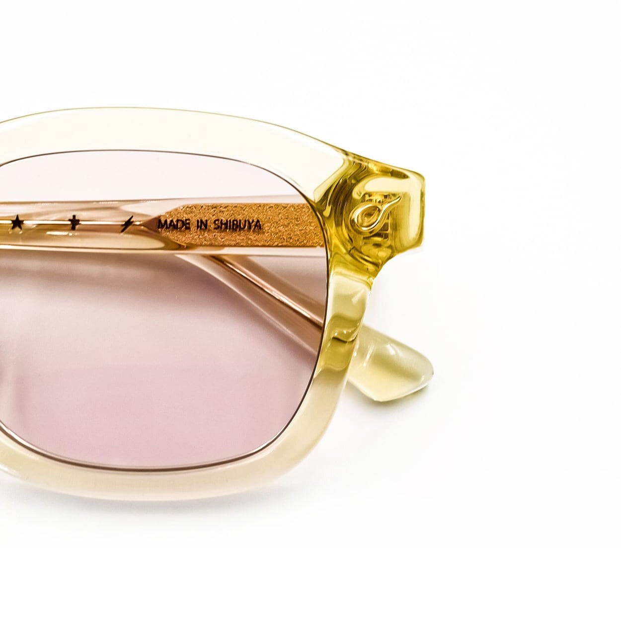 フレームColorには、日焼けしたセルロイドやVintage Eyewearを想起させ、新品でありながら経年を感じさせる表情を追求したVinatageYellowフレーム。