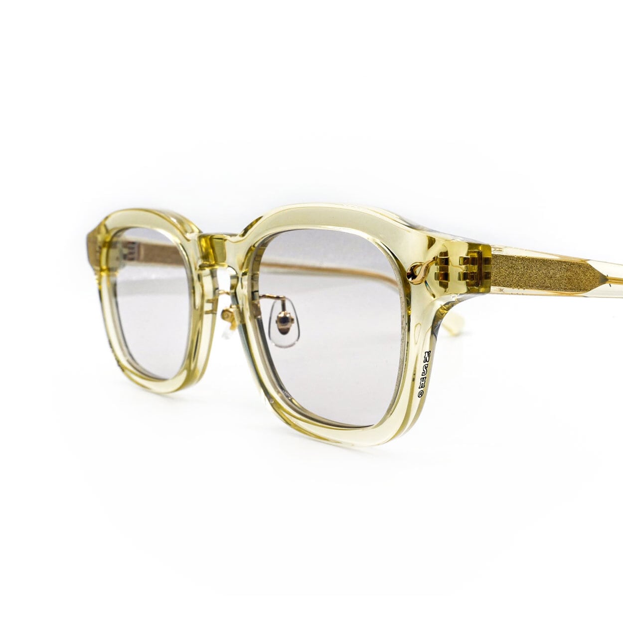 Vintage Yellowフレームに、Grayの抑制されたトーンで引き締めることで、無機質で落ち着いた雰囲気のAsh Grayレンズ。