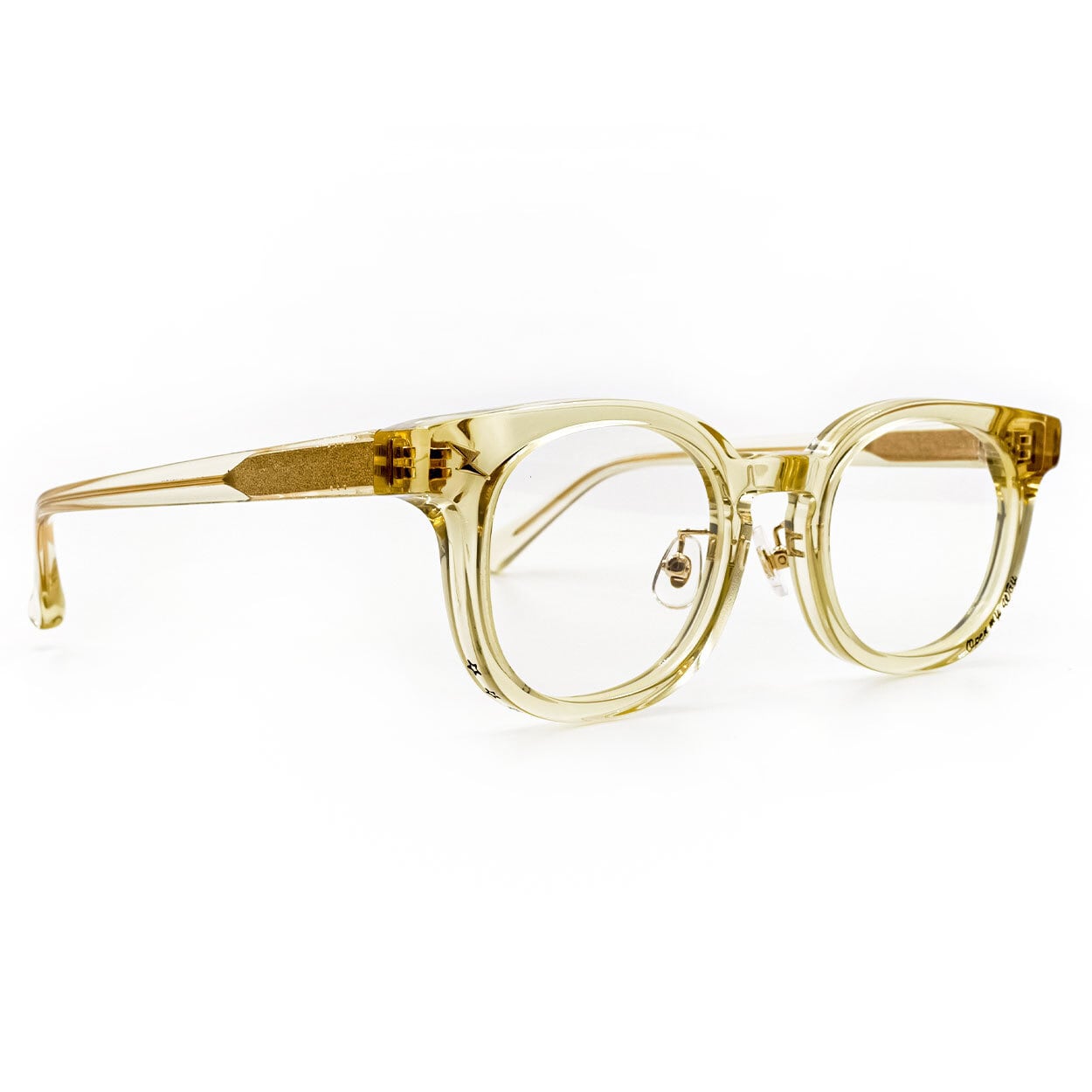 経年を感じさせるVintage Yellowが、光の角度によって静かに表情を変え、淡い透明感の奥に潜ませた深みが、装いに品格を与えるフレーム。