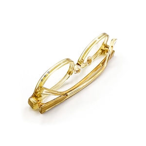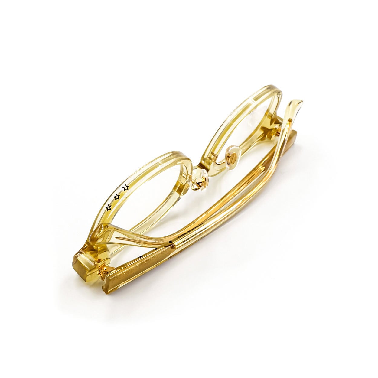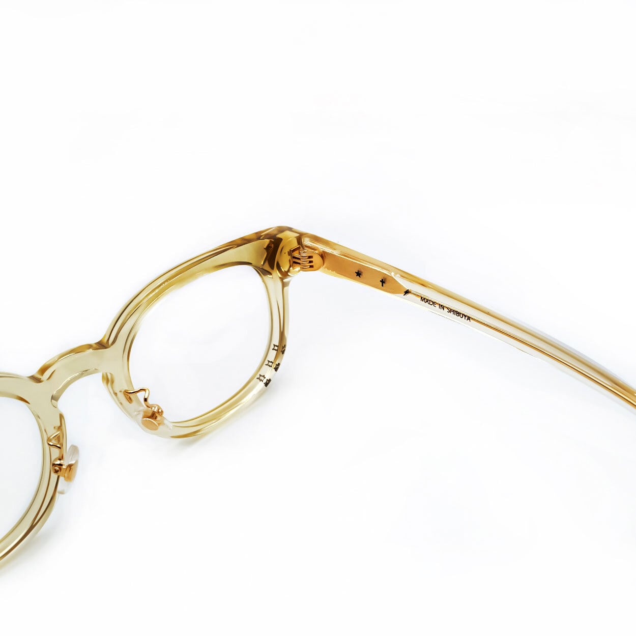 経年を感じさせるVintage Yellowが、光の角度によって静かに表情を変え、淡い透明感の奥に潜ませた深みが、装いに品格を与えるフレーム。
