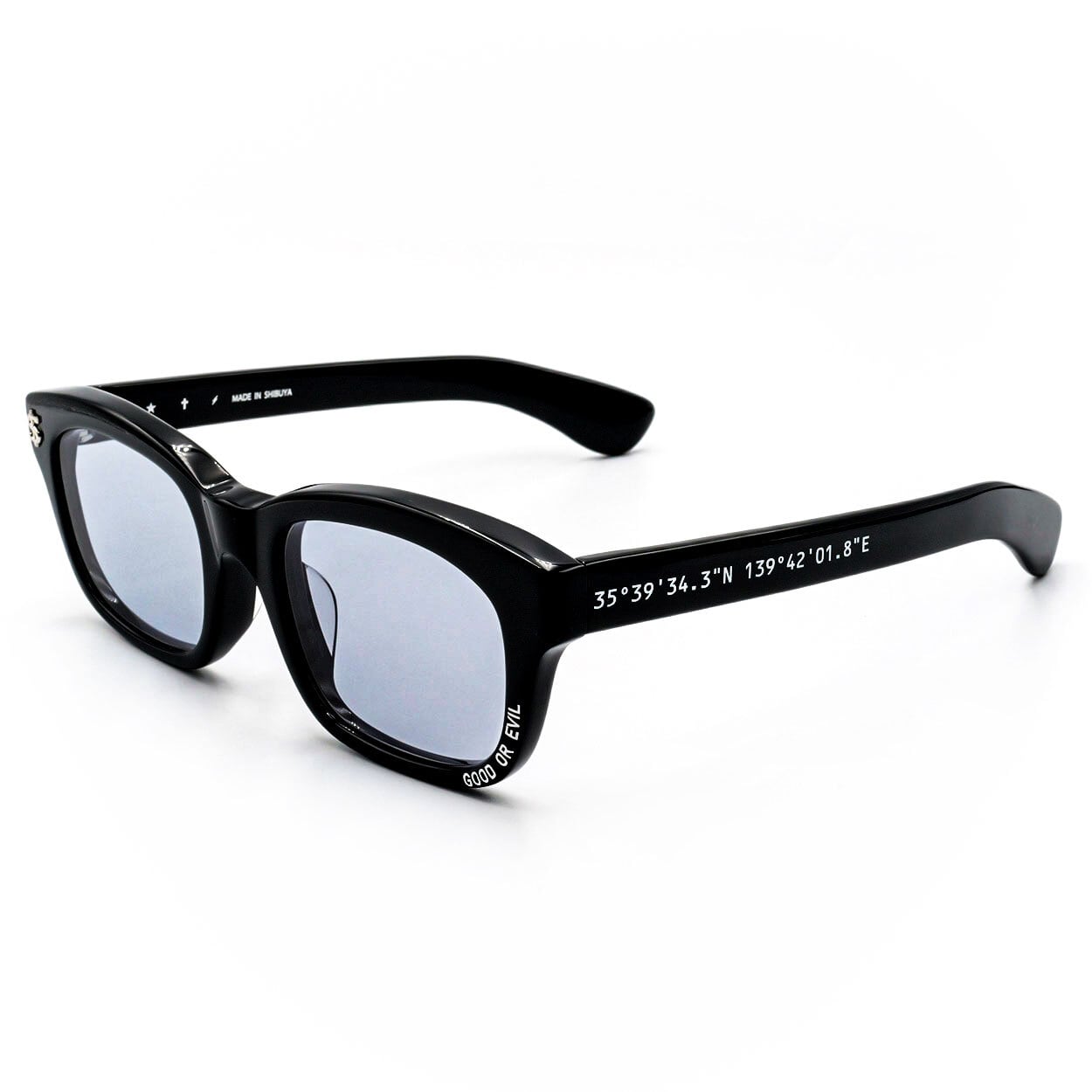 フレームに忍ばせた「渋谷眼鏡」の刻印は、都会の遊び心を象徴するディテール。