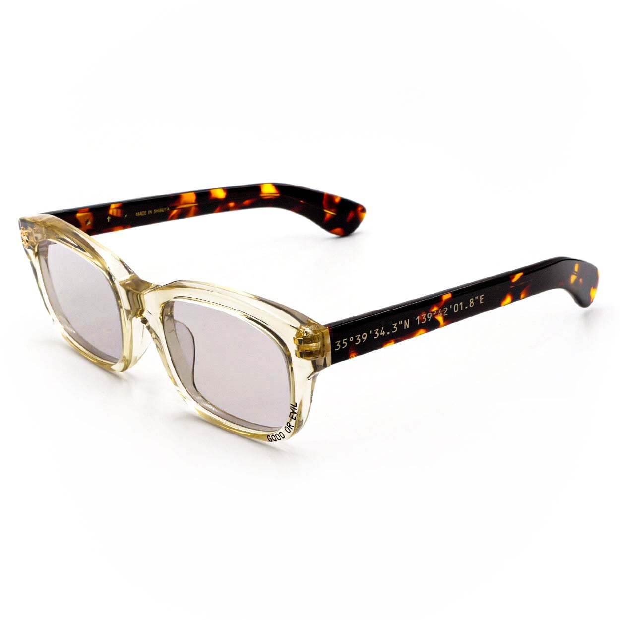 フレームに忍ばせた「渋谷眼鏡」の刻印は、都会の遊び心を象徴するディテール。